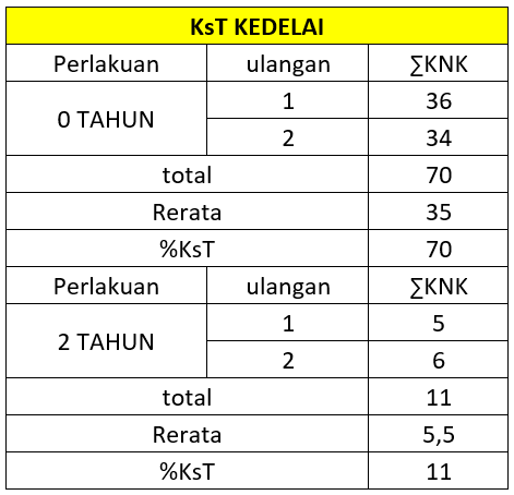 Data tabel 4.1 menunjukkan bahwa keserempakan tumbuh menurun secara signifikan pada benih kedelai yang disimpan dalam periode 2 tahun. Keserempakan tumbuh tertinggi terdapat pada benih kedelai yang tidak melalui proses penyimpanan (0 tahun), perlakuan umur simpan selama 2 tahun menyebabkan penurunan dalama mutu fisiologis. Adanya penurunan vigor benih kedelai pada umur simpan 2 tahun diduga selama proses penyimpanan kondisi awal benih memiliki kadar air yang tinggi, benih berpenyakit, terdapat luka benih sehingga benih tidak dapat umbuh yang berarti benih mati atau tidak tumbuh sama sekali. Pada saat panen, benih belum masak ataupun lewat masak fisiologis hal ini dapat mempengaruhi indeks vigor. Justice dan Bass, (2002) menyatakan bahwa pemanenan yang dilakukan pada masa benih mecapai masak fisiologis memiliki nilai kecepatan tumbuh dan keserempakan tumbuh lebih tinggi dari benih yang dipanen setelah lewat masak.